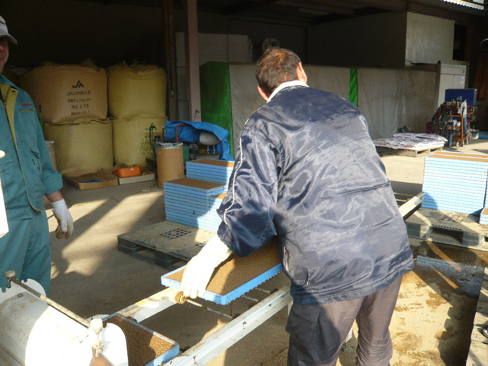 三月になりましたね。 暖かくなったかと思えば昨日のように雪が降ったり・・・先が読めないですね。 ここの所暖かくて気候も良かったから予想以上にお客さんに来て頂けまして、忙しい日々が続いておりました。 少人数でやっておりますので予想外の事があると、精米作業やらに追われ、すぐにてんてこまいになってしまいます0(。><)0 ですが、昨日のように寒い日や雨の日はお米を買いに来られる客さんも少なくなります。 そんな昨日は、フォークリフトでぶつけた天井を修理したり、お米の選別をしたり、店内の看板を作り替えたりしておりました。 ヒマな日はヒマなりに何かとやる事はあるようです。 そんな中、昨日滋賀県から片渕農家さんと息子さんが来てくれました。 お店の中で記念撮影。 片淵さんの作ったお米「ひのひかり」好評発売中です!!! おいしいですよ!! |